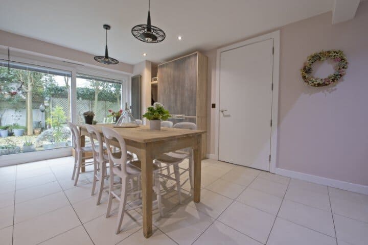 The kitchen has large patio doors into the garden as is used as the main access to outside. That means people will come in and out through that door so they’ll need somewhere to put shoes and coats. Not as large as the space allowed by a front door, but nevertheless know we’ll have shoes and coats, so in a moment we’ll show how we incorporated that use into the design.