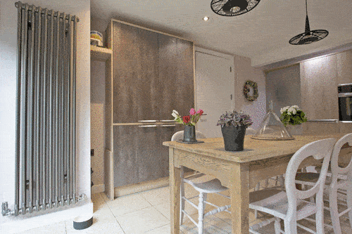 The second most notable item is the radiator. It’s a Zehnder Charleston radiator in ‘Technoline’ finish. This has the raw metal cleaned and lacquer coated without additional colour. I love being able to see the laser welded joins on this radiator and it works really well with the metallic styled cabinet doors.